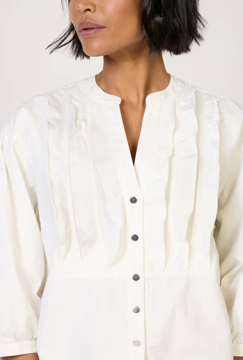 Crafted from structured cotton, this everyday blouse by Nation Los Angeles features a cropped, boxy fit, partial front silver snaps, and gorgeous texture details.