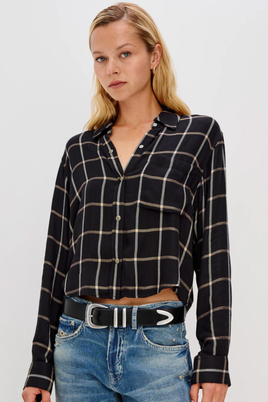 If you love the Hunter, meet the Malin. Cut from our signature ultra-soft rayon with a loose twill weave, this plaid button-down has the same timeless feel—now 5" shorter for a cropped, boxy fit.100% Rayon.Imported.