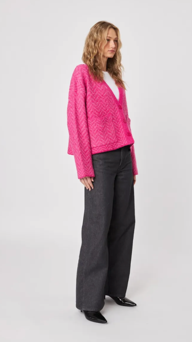 This vibrant John & Jenn Ricky Cardi in cerise herringbone features a chic open-front design, perfect for layering over casual or dressy outfits. Made from a soft blend, it offers both style and comfort, making it an essential addition to any wardrobe. The bold color adds a pop of personality, while the classic herringbone pattern ensures versatility. Dress it up or down; this cardigan is ideal for any occasion, ensuring warmth without sacrificing style.