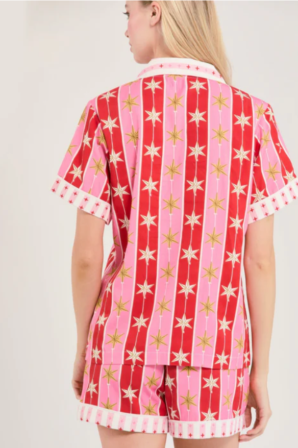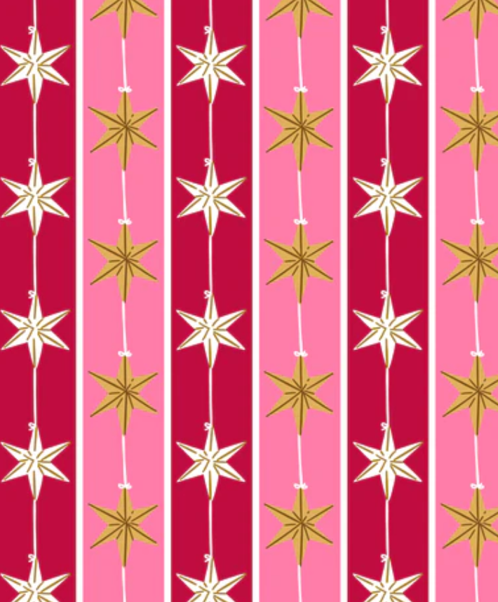 Bold red and pink stripes meet a string of stars in our Katie Kime Tree Topper print, a playful twist to classic holiday style.